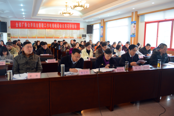 12月27日下午,省总工会、全省厂务公开协调领导小组组织召开全省厂务公开民主管理工作电视电话会议,市总工会党组书记、常务副主席罗应中在黄石分会场进行工作经验交流,市委常委、市总工会主席钟丽萍出席会议并讲话。