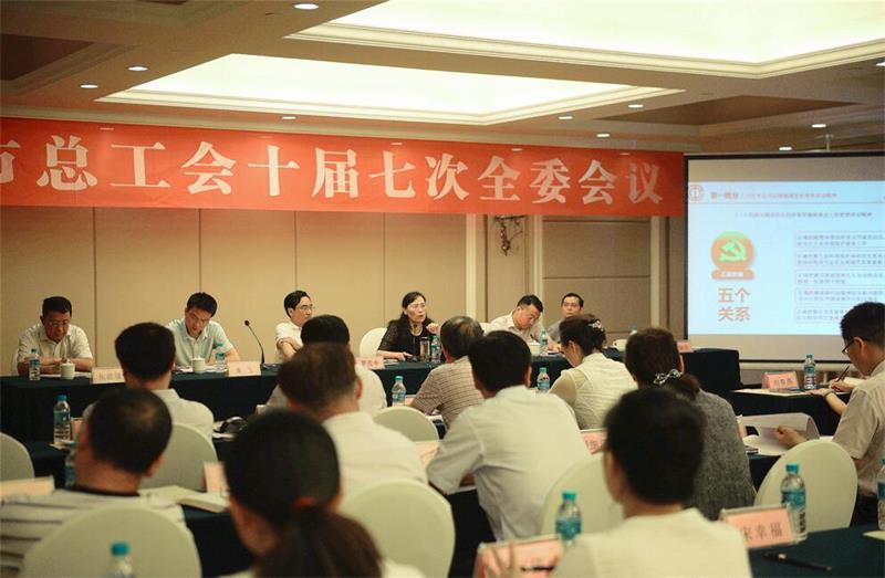 6月28日上午,黄石市总工会十届七次全委会在磁湖山庄召开。市委常委、市总工会主席钟丽萍参加会议,并在会上讲授党课。