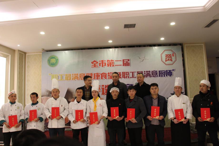 12月26日上午,由市总工会、市食品药品监督管理局、黄石市“健康黄石”全民行动领导小组办公室主办,黄石港区总工会协办,市烹饪酒店行业协会承办的全市第二届“职工最满意健康食堂”、“职工最满意厨师”厨艺比赛在金洋大酒店举行。