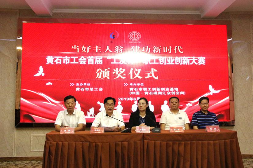 市委常委、市委宣传部部长、市总工会主席钟丽萍为获奖者颁奖。钟丽萍指出,本次大赛所展示的成绩,是黄石职工精神面貌和创造智慧的一个缩影,是推动大众创业、万众创新,实现广大职工对美好生活向往的生动实践,打造了竭诚服务职工群众的新品牌,为全市工会工作创新发展提供了具有示范意义的经验做法,希望全市广大职工以这次创业创新大赛为号角,以更加饱满的热情投身大众创业万众创新的时代洪流,大胆探索实践,积极开拓创新,把大众创业万众创新不断推向新高潮,为黄石持续转型升级、推动高质量发展作出新的更大贡献。