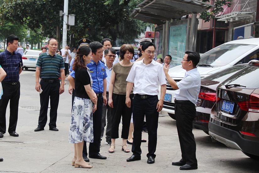 罗应中一行实地查看了道路沿线的市政设施、绿化维护、环境卫生、市容秩序、“门前三包”及氛围营造等创文工作进展情况,并与相关工作人员交谈,了解目前存在的停车位划线、“门前三包”责任落实等困难与问题,进行现场沟通协调,力求明确责任归属。