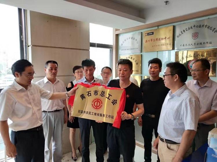 7月19日,市总工会党组书记、常务副主席罗应中一行前往温州,为“黄石市总工会驻温州农民工维权服务工作站”授牌,并给予10万元专项工作补助经费。
