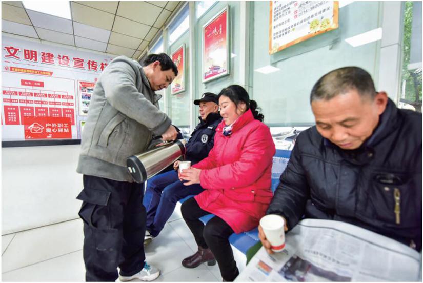环卫工人黄苗凤清扫完一段道路后,来到爱心驿站里歇脚:“有了爱心驿站,现在天冷能吃上热乎的饭菜了,人也暖和,挺好。工会真是我们的娘家人。”这是黄石市总工会心系群众、解群众之难的一个缩影。