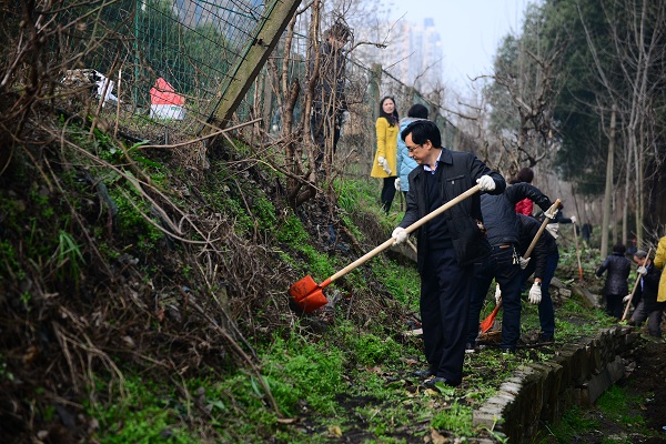 为推动市总工会创卫活动深入开展,克服工会机关“四化”问题,2月24日上午,市总工会常务副主席罗应中亲自带领全体机关党员干部深入磁湖社区,对社区铁路两旁的生活垃圾、枯枝杂草及私种菜地进行集中清理。