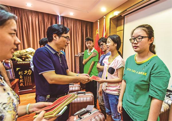 8月29日,市总工会举办2017年全市“金秋助学”座谈会,市总工会党组书记、常务副主席罗应中出席座谈会,现场为18名贫困学生代表送上助学金和行李箱。