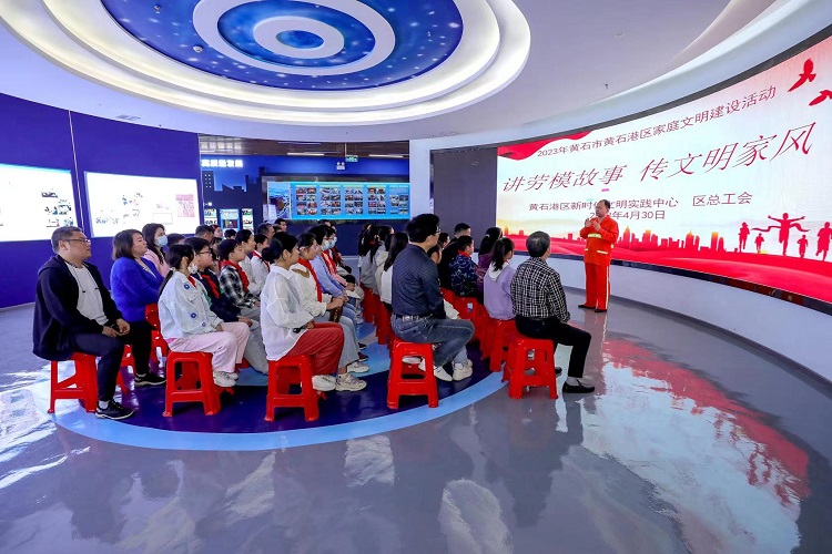 4月30日,黄石港区总工会等单位在黄石工人运动史展览馆开展“讲劳模故事传,文明家风”家庭文明建设宣讲活动,邀请到黄石五一劳动奖章获得者罗辉主讲,25户家庭的家长与孩子共同聆听的宣讲,并参观了展览馆,强化了家长对孩子的劳动教育意识。