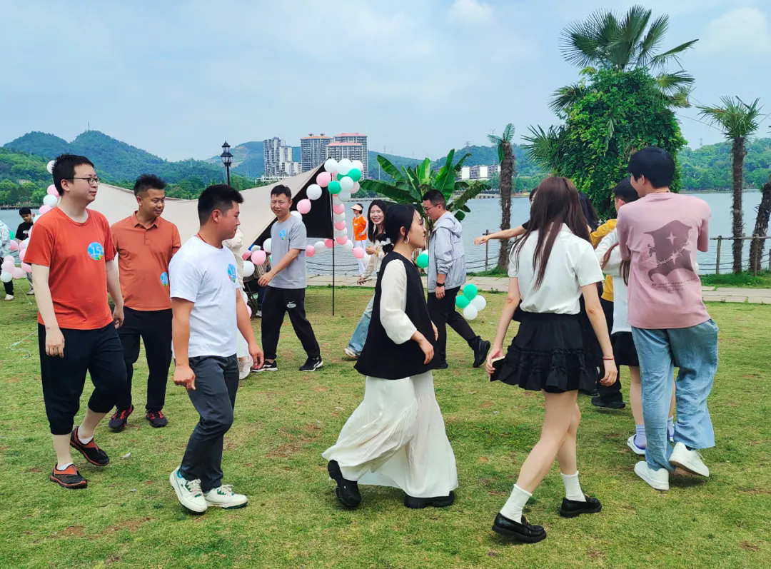 互动环节堪称 “破冰神器”,“趣味鹿角套圈” 中男女搭档默契配合,“逢三抓手” 考验反应力,“踩气球大战” 更是活力满满,大家在奔跑与协作中,迅速拉近了彼此距离,获胜小组还抱走了防晒帽、冰袖等实用好礼,收获快乐与惊喜。