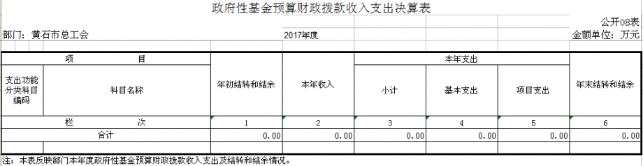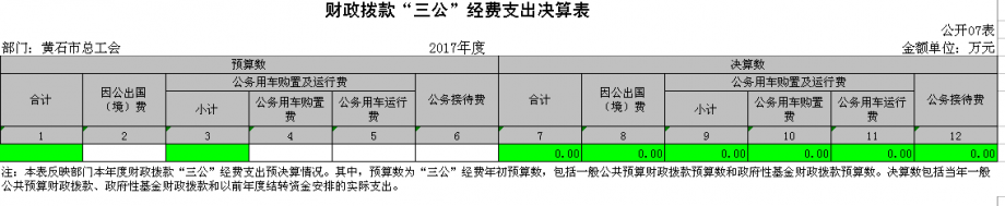 2017年部门决算反映的是黄石市总工会本级单位财政资金收支决算,年初无政府采购计划。2017年度政府采购支出为零。