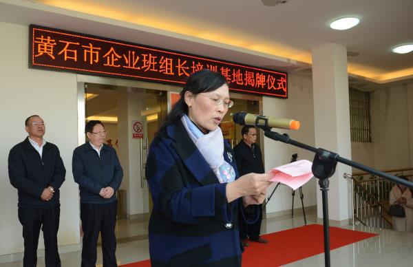 12月5日下午,黄石市企业班组长培训基地在大冶有色公司职教中心正式挂牌。市总工会党组书记、常务副主席罗应中主持揭牌仪式、湖北省总工会党组书记、常务副主席董永祥、黄石市委常委、总工会主席钟丽萍为培训基地揭牌,省总工会党组成员、副主席张卫、市总工会党组成员、副主席柯忠启、市职工技术协会副会长鲁伟明、大冶有色金属公司董事长翟保金参加了活动。