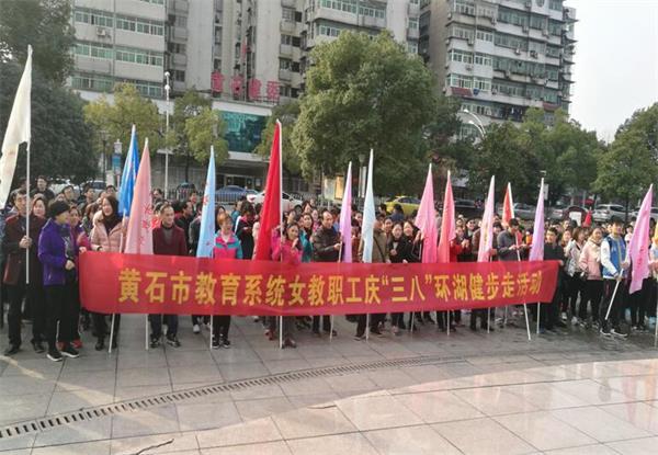 3月8日,春意盎然,阳光明媚,黄石市教育工会在磁湖南岸举行庆“三八”全市教育系统女教职工环湖健步走活动。本次比赛共有28个队,每队由12名队员组成,共同角逐,最终逐出一等奖两个队20人,二等奖三个队30人,三等奖四个队40人的好成绩。本次活动既倡导了“绿色出行,低碳环保”的生活方式,又传播了“快乐工作、健康生活”的人生的理念,丰富了我市女教职工的文体生活,促进了女教职工身心健康,营造了团结协作,文明向上的浓厚氛围。市总工会党组成员、教育工会主席邱慧敏同志参加了本次活动并讲话。