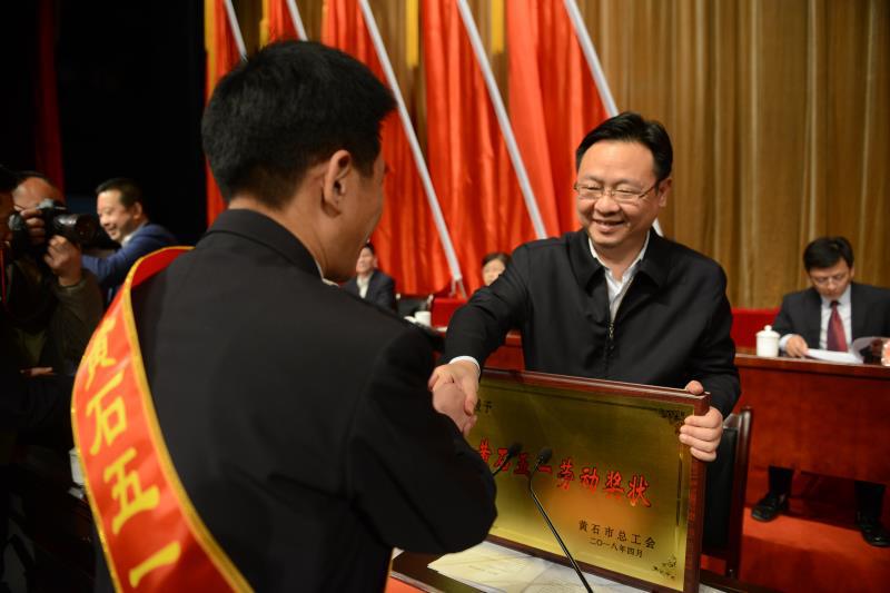 4月26日,黄石市庆祝“五一”国际劳动节暨表彰大会在磁湖剧院举行,大会表彰了获得“五一”劳动奖章、劳动奖状和工人先锋号的先进集体和个人。