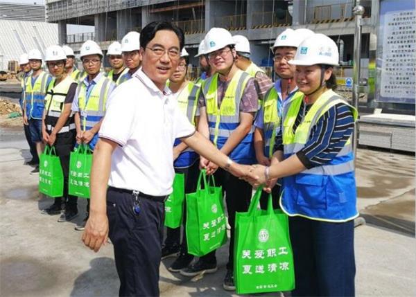 7月17日上午,高温酷暑。市委常委、市总工会钟丽萍,市总工会党组书记、常务副主席罗应中一行带上清凉物资,慰问坚持在户外、高温下作业的中铁十一局黄石新港铁路运营项目和黄石市民之家项目工地的施工人员。钟主席叮嘱这些工人要注意防暑降温,同时要求项目单位落实好高温天气的安全防护措施,保障广大职工在生产过程中的安全与健康。