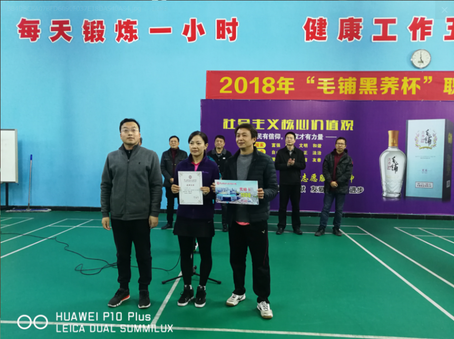 11月17日至18日,为期两天的2018年”毛铺黑荞杯”职工羽毛球邀请赛在市工人文化宫羽毛球馆完赛。来自大冶有色、大冶铁矿、华电黄石热电分公司、湖北航天电缆、湖北西塞山发电等12家单位的百余名职工参赛。大冶有色、新兴管业、中石机电获得团体前三名,市总工会党组成员、副主席梅定祥,市总工会副主席高飞出席了颁奖仪式并为获奖单位颁奖。