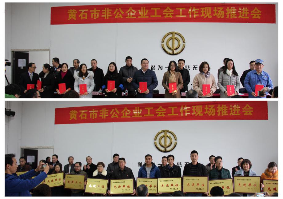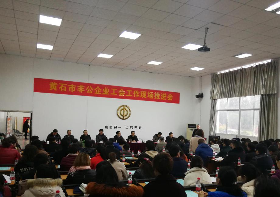 市总工会党组书记、常务副主席罗应中在推进会讲话中充分肯定了黄石市各级非公企业工会工作,宣讲了中华全国总工会十七大精神和习总书记重要讲话精神,从为什么建工会、怎么建工会、如何做好工会工作三个方面提出非公企业工会工作的目标肯要求:一是要提高政治站位,充分认识推进非公企业工会工作重要性,工会要引导职工群众听党话、跟党走。二是要强化工作措施,切实增强非公企业工会工作水平,巩固非公企业工会组织建设,加大非公企业职工入会工作力度,特别是“九大群体”和农民工,进一步优化非公企业工会干部队伍建设。三是要把握关键要素,确保我市非公企业工会工作可持续性。