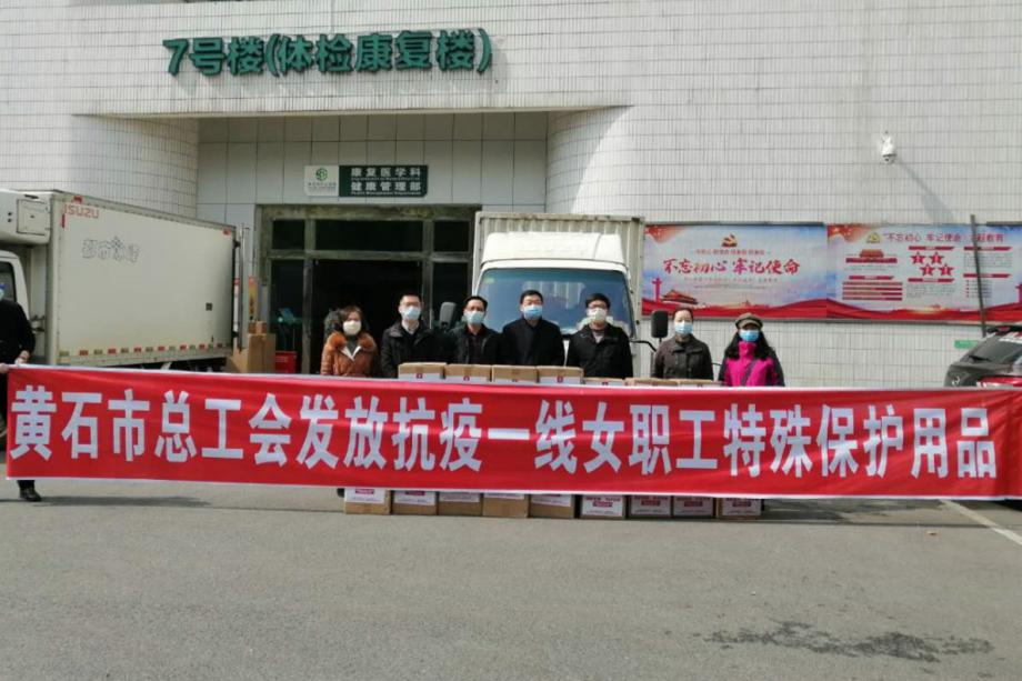 3月10日,市总工会党组成员、副主席黄毅和市总工会党组成员、女职委主任邱慧敏先后前往鄂东医疗集团和大冶市总工会、阳新县总工会等单位,为奋战在防疫一线的女医务人员(含江苏援黄医疗队女医务人员)赠送了一批妇女卫生用品。