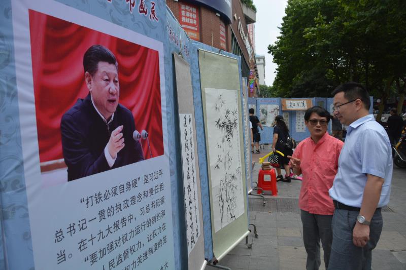 13日,西塞山区纪委监委、区总工会、区委老干部局联合在大上海广场举办“清风西塞”廉政书画展活动。