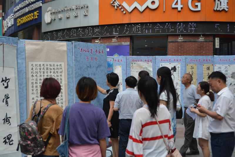 本次活动从征集的百余幅作品中挑选了65幅主题鲜明、寓意深远的书画布展。活动现场,一幅幅廉政书画一字排开,吸引近千人次驻足观看,合影留念,大家在欣赏书画的过程中接受了廉政文化熏陶。