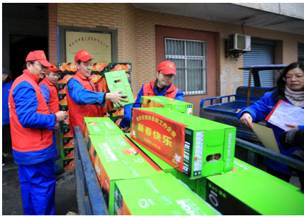 1月15日,在大冶有色公司一群“520志愿者”们正忙着为职工搬运、发放春节“大福利”物资工作。这是大冶有色公司工会组织开展的“520志愿者”服务系列活动之一。
