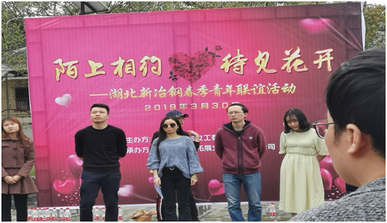 3月30日,由湖北新冶钢公司工会举办的2019年第一届“陌上相约 待见花开”青年交友联谊活动,在阳新石田古驿温情上演。五十名青年相聚一起,共同度过温馨浪漫的一天。