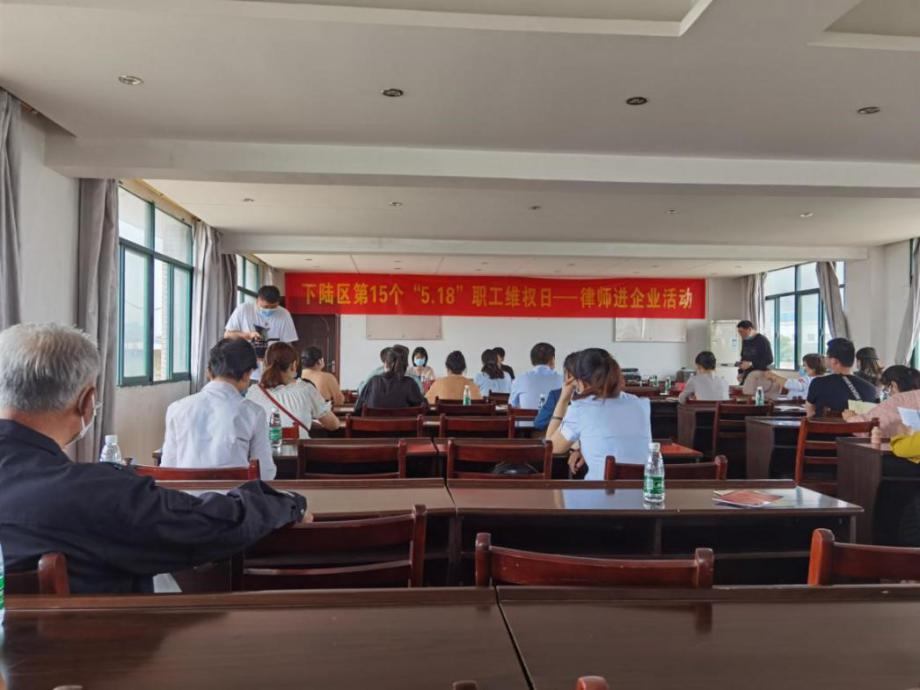 15日上午,区总工会在下陆区循环经济创业园开展律师进企业活动,邀请三名律师现场向企业讲解《保障农民工工资支付条例》、《中华人民共和国职业病防治法》、《支持企业复工复产维护职工合法权益法律服务指引》,并提供法律咨询,与企业面对面交流,活动现场氛围热烈,现场发放印制的宣传资料500余份。
