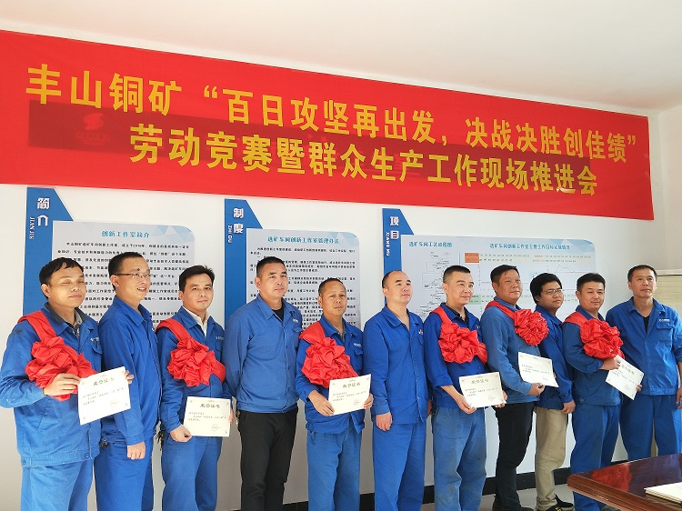 六名班组群众生产工作先进个人在会上受到表彰,与会的采掘车间、选矿车间等四个车间工会负责人交流了群众生产工作特色做法及下步推进措施,选矿碎矿大班作为“安康杯”活动暨劳动竞赛班组代表,进行表态发言。丰山铜矿工会号召各级工会要紧密围绕矿生产经营总目标,团结凝聚广大职工,逆流而上,提起精气神,以竞赛促提升,大力开展岗位建功、创新创效,为完成百日攻坚目标,决战决胜,作出新的更大贡献!