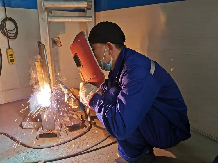 此次比武,除理论考试外,实操共设板对接立焊3G和T型接头平角焊2F两个项目。上午8:30分首先进行了理论考试,9:30分随着裁判长一声令下,参赛选手们个个精神饱满地投入到实操比赛中,大家分批分工位,有条不紊地忙碌起来。校正板材、打磨坡口、固定试件、调试焊机,每一项操作都反映出了参赛选手深厚的功底。
