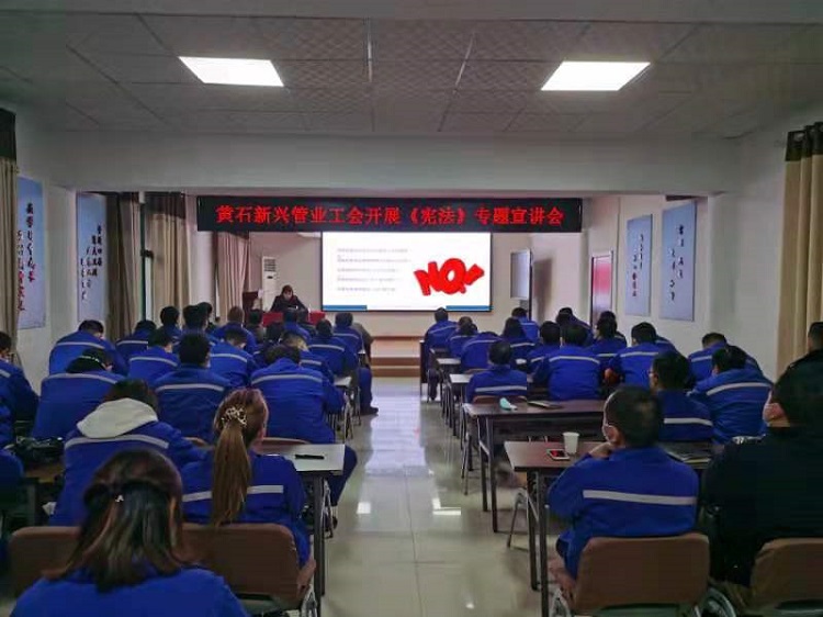为深入学习贯彻习近平新时代法治思想,大力弘扬宪法精神,扎实开展2020年“宪法宣传周”法治宣传教育活动,维护宪法权威,推动宪法全面实施。12月4日,黄石新兴管业有限公司工会邀请湖北群力律师事务所伍诗琪律师开展《宪法》专题宣讲会。黄石新兴各分工会干部、女工代表及青年职工共计60余人参加了此次专题宣讲会。