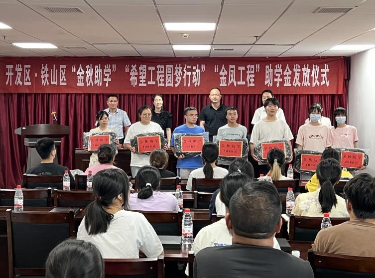 9月1日,正值学生开学的日子,开发区·铁山区总工会举办“金秋助学”助学金发放仪式,为29名困难学生发放助学金12.5万元,并为每位学生送上书包、笔记本和笔等助学礼包。
