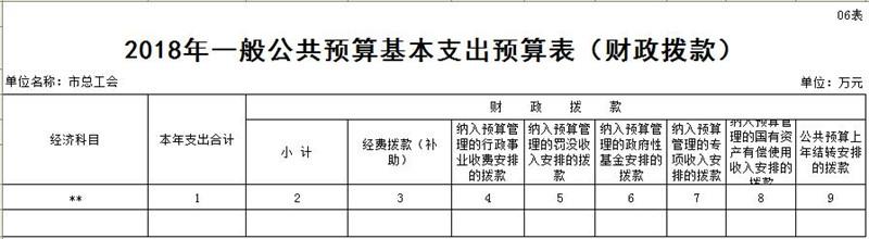 市总人员经费按资金来源分为财政预算拨款和工会经费收入。纳入2018年财政预算拨款的离退休人员65人,其余行政在职人员人员经费在工会经费开支。